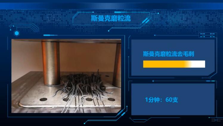 当然,这种小零件的加工时间不能太长,尤其是齿轮类零件,太长的话整个尺寸就会有很大的偏差。如果说毛刺控制不好的话,即使我们可以将其完全去除,最后也会因为精度问题不合格。所以,越是微型零件,越是要控制好毛刺的大小,尽量不要用快到更换期的刀具。下面这幅图就是磨粒流加工的过程: