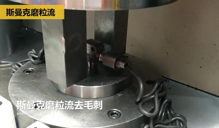 该三通阀比较精密,在去除相交孔毛刺的基础上,孔径公差影响不得超过2μ,且不能对孔口的弧面有划伤或其他破坏。我们先来看下去毛刺前的内孔: