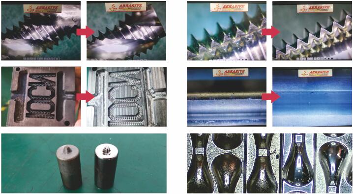 此种工艺可为复杂外表面带来极佳的镜面效果,并降低粗糙度1-2个等级,用于刀具钝化、冲头抛光、精密医疗器械抛光、涂层抛光、雕刻模具抛光等领域。