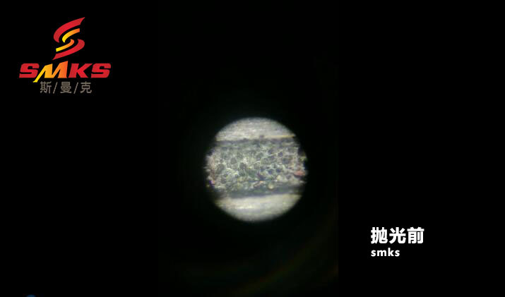 放在显微镜底下,可以看到金属表面粗糙度的变化非常明显,内壁表面的火花纹或是粗糙颗粒已经完全没有了,取而代之的是细腻且泛光的质地。